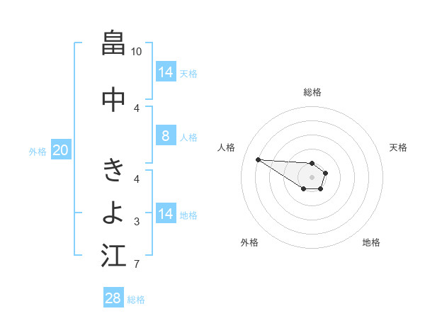 畠中 きよ江さんを姓名の画数から五運を鑑定