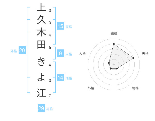 上久木田 きよ江さんの総格は29画の4点!