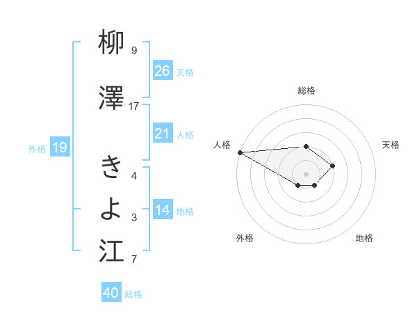 柳澤 きよ江さんの総格は40画の2点!