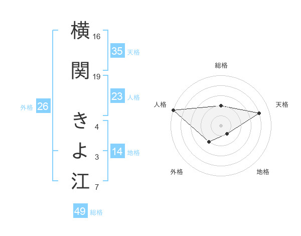 横関 きよ江さんを姓名の画数から五運を鑑定