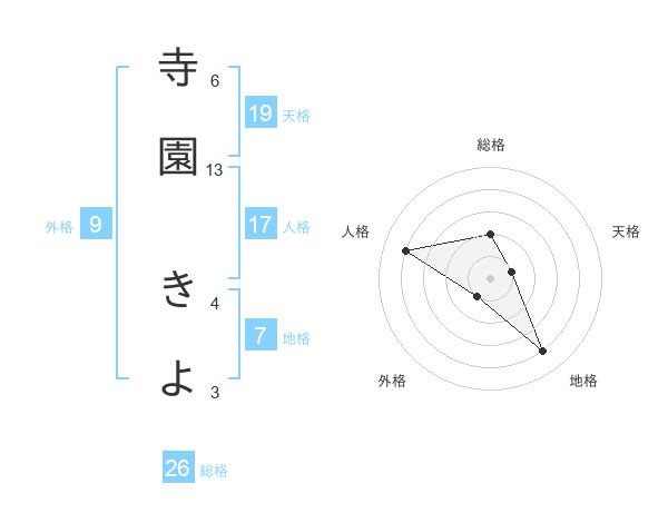 寺園 きよさんの総格は26画の2点!