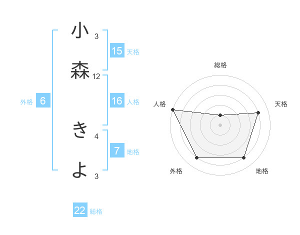 小森 きよさんの天格は15画の4点!