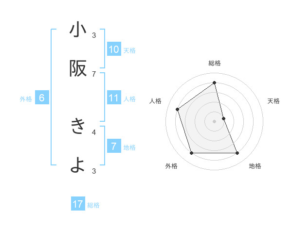 小阪 きよさんの総格は17画の4点!