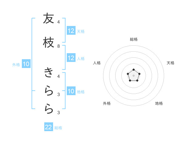 友枝 きららさんの天格は12画の1点!