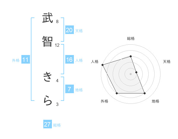 武智 きらさんの総格は27画の3点!