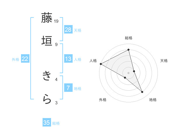 藤垣 きらさんの外格は22画の1点!