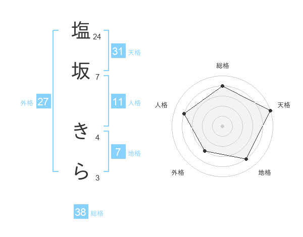 塩坂 きらさんの総格は38画の4点!