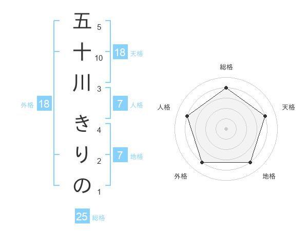 五十川 きりのさんを姓名の画数から五運を鑑定