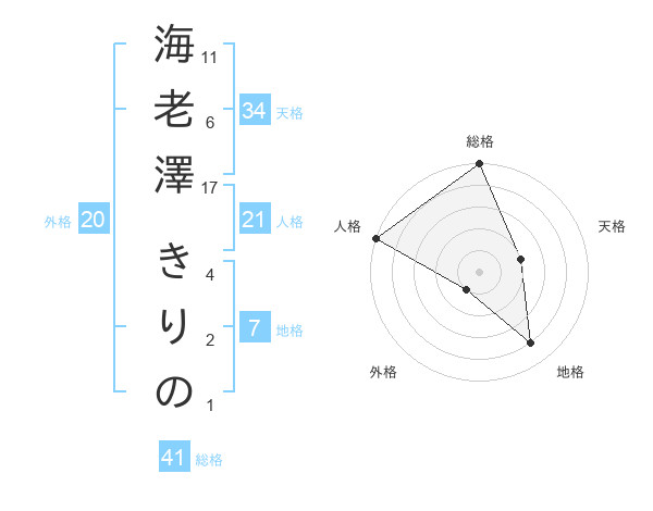 海老澤 きりのさんを姓名の画数から五運を鑑定