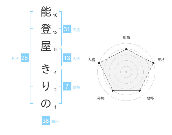 能登屋 きりのさんを姓名の画数から五運を鑑定