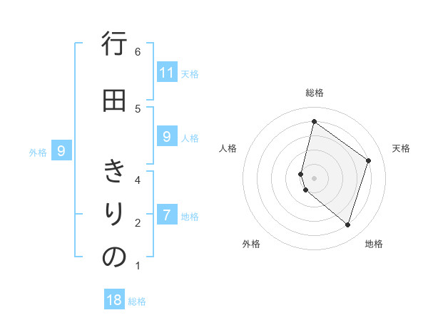 行田 きりのさんの天格は11画の4点!