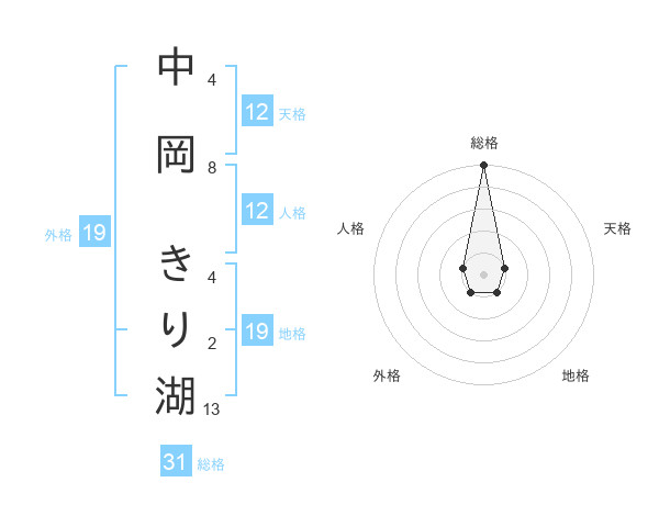 中岡 きり湖さんを姓名の画数から五運を鑑定
