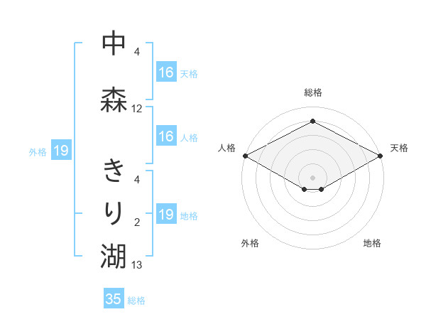 中森 きり湖さんの総格は35画の4点!