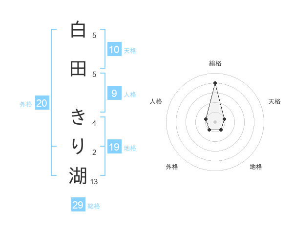 白田 きり湖さんの総格は29画の4点!