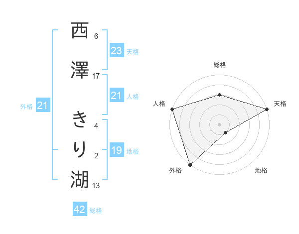 西澤 きり湖さんを姓名の画数から五運を鑑定