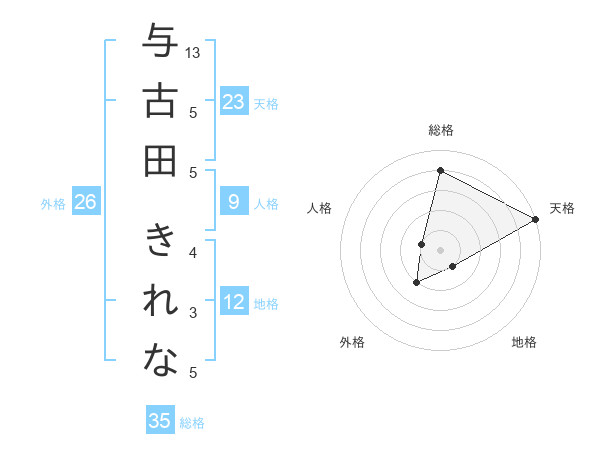 与古田 きれなさんの天格は23画の5点!