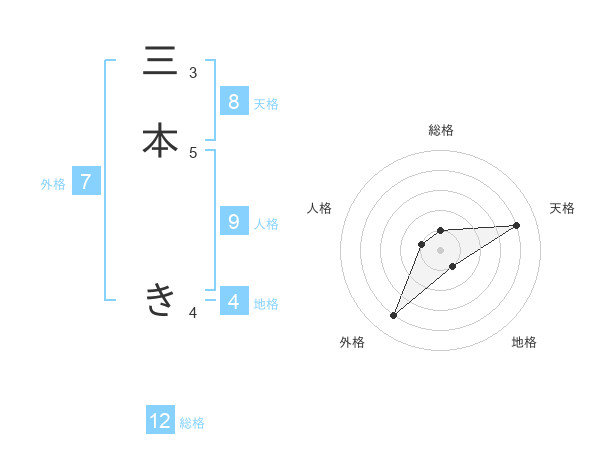 三本 きさんの総格は12画の1点!