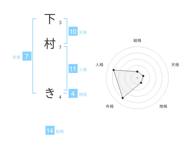 下村 きさんの外格は7画の4点!