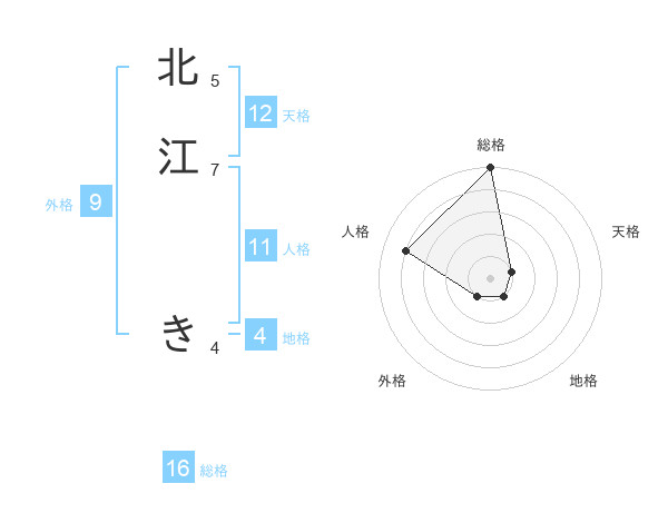 北江 きさんの総格は16画の5点!