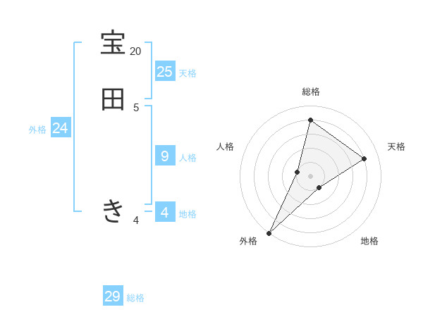 宝田 きさんの総格は29画の4点!