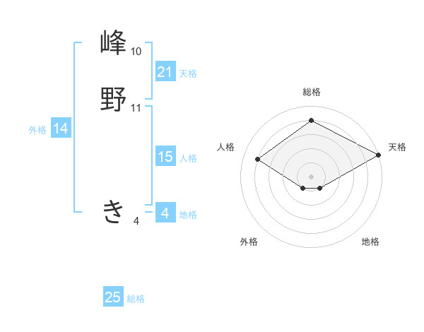 峰野 きさんの天格は21画の5点!