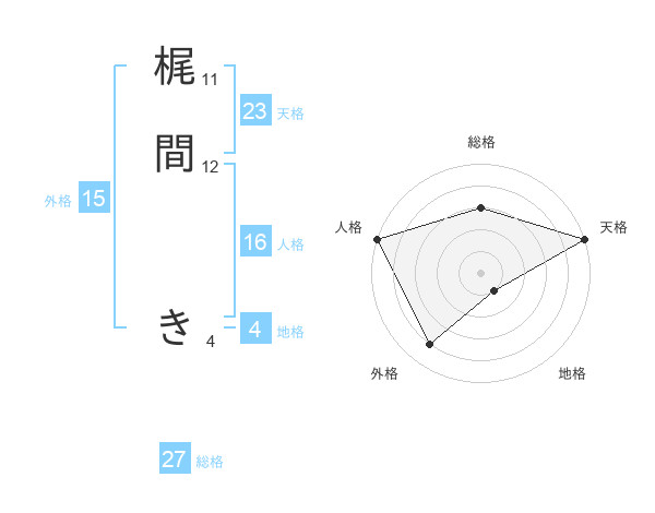 家系が持つ宿命的な運勢を表します。祖先から受け継いだ苗字ですので自分の力が及びません。家柄を象徴します。