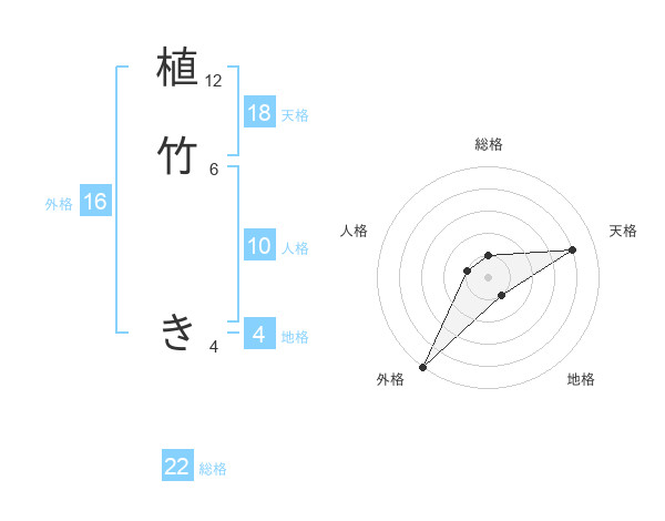 植竹 きさんの天格は18画の4点!