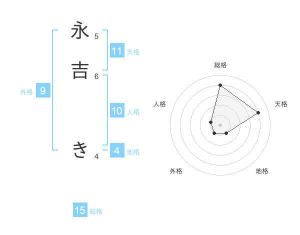 永吉 きさんの総格は15画の4点!