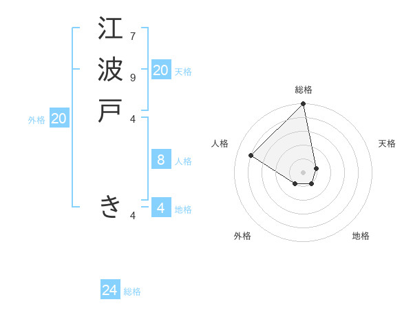 江波戸 きさんの総格は24画の5点!