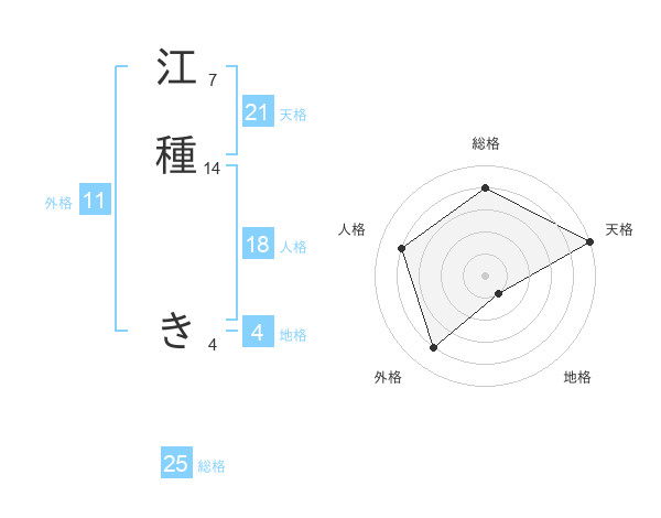 江種 きさんの総格は25画の4点!