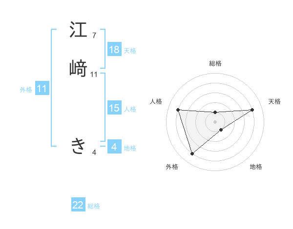 江﨑 きさんの総格は22画の1点!
