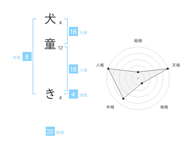 犬童 きさんの天格は16画の5点!