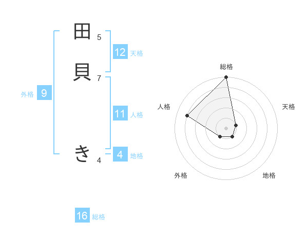 田貝 きさんの総格は16画の5点!