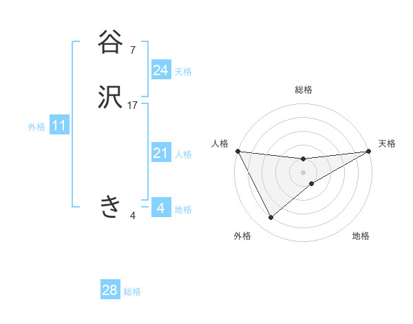谷沢 きさんの天格は24画の5点!