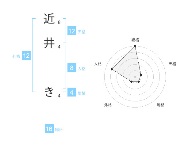 近井 きさんの外格は12画の1点!