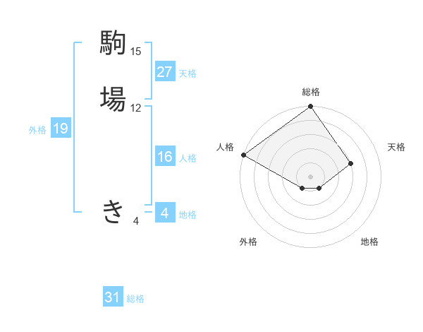 駒場 きさんの外格は19画の1点!