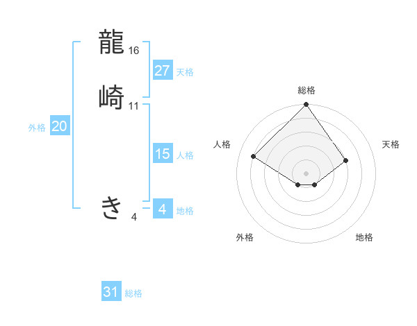 龍崎 きさんの総格は31画の5点!