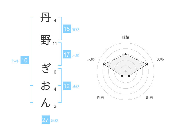 丹野 ぎおんさんの天格は15画の4点!