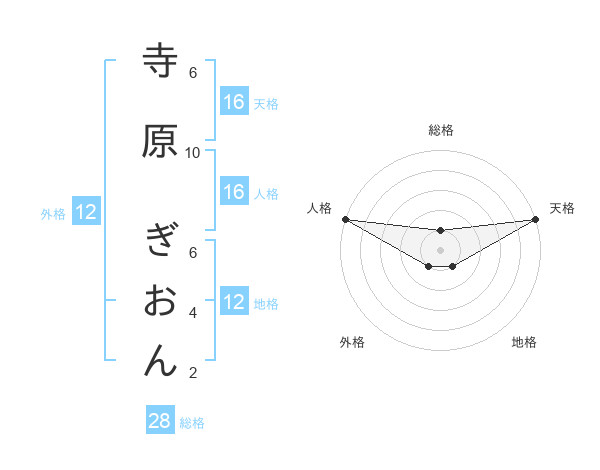 寺原 ぎおんさんの人格は16画の5点!