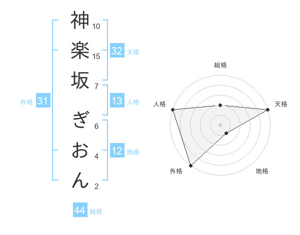 神楽坂 ぎおんさんの人格は13画の5点!