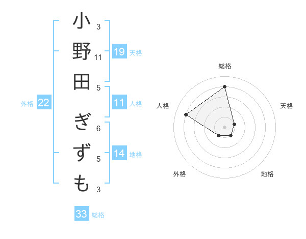 小野田 ぎずもさんを姓名の画数から五運を鑑定