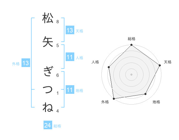 松矢 ぎつねさんの外格は13画の5点!