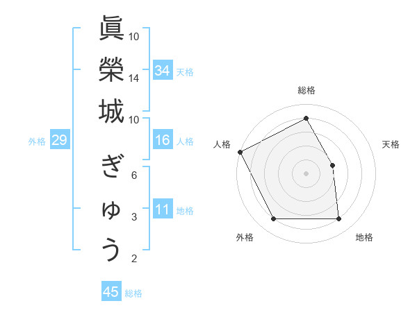 眞榮城 ぎゅうさんの総格は45画の4点!