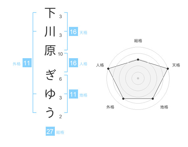 下川原 ぎゆうさんを姓名の画数から五運を鑑定