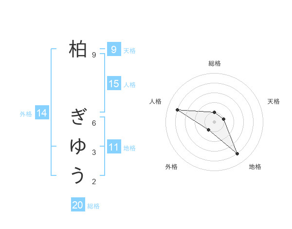 柏 ぎゆうさんの総格は20画の1点!