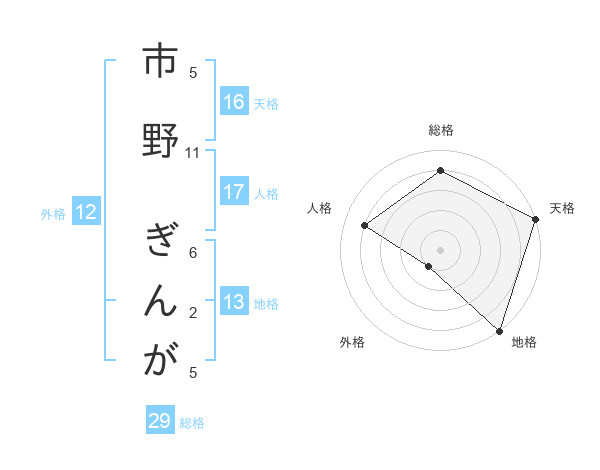 市野 ぎんがさんを姓名の画数から五運を鑑定
