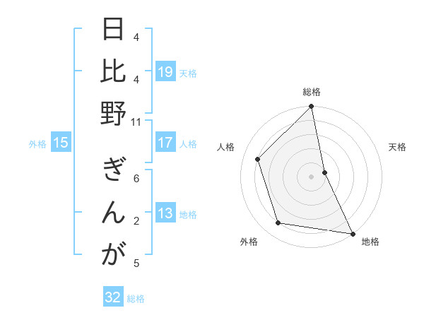 日比野 ぎんがさんを姓名の画数から五運を鑑定
