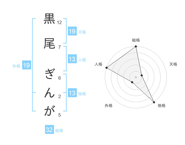 黒尾 ぎんがさんの地格は13画の5点!