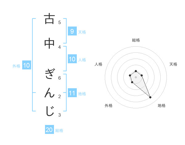 古中 ぎんじさんを姓名の画数から五運を鑑定