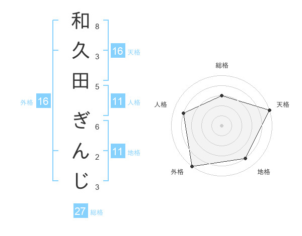 和久田 ぎんじさんを姓名の画数から五運を鑑定